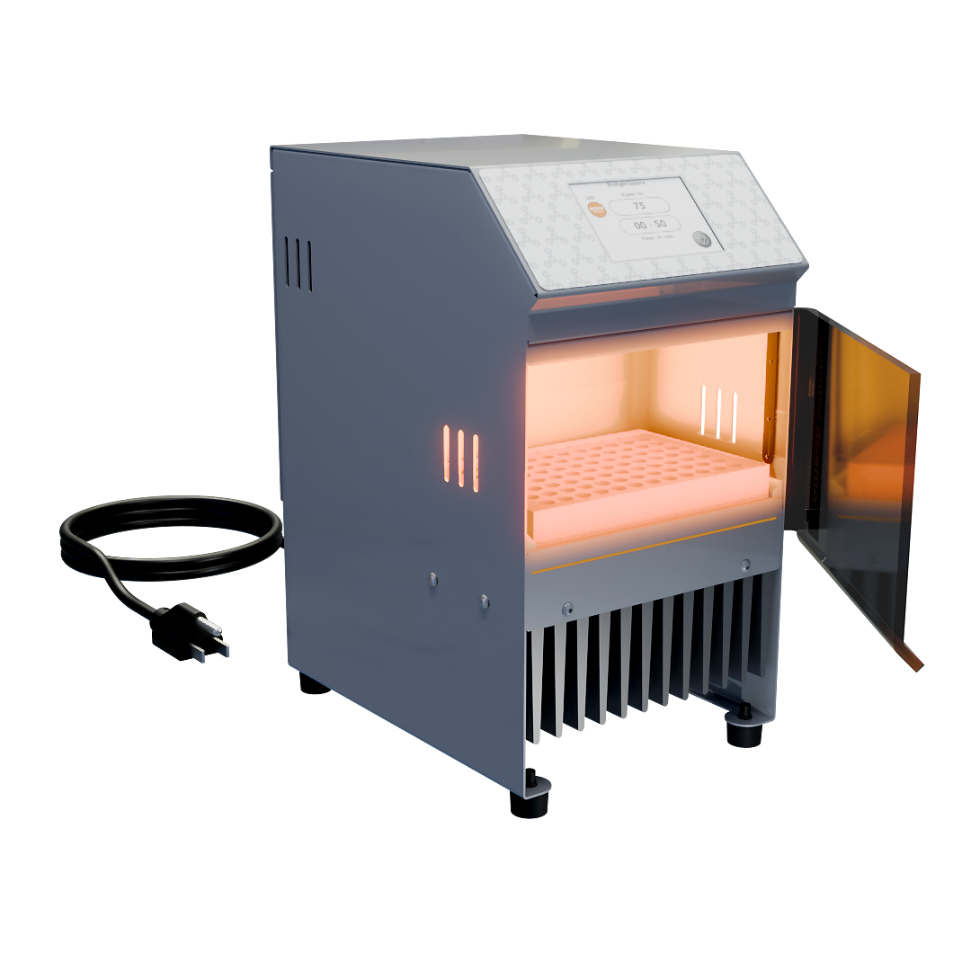 This is the BIOLIGHT SOURCE a machine used for R&D lab tests, it was developed to has the maximum efficacy on lab research’s, it has irradiation chamber where the LED emitters are placed to supply the optimal condition of irradiation to the well plates. The way it is build has as propose give the best results and to hold wells plates to always receive same energy during the experiments, it can be used on several experiments and researches.